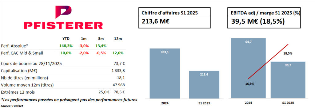 PFISTERER Holding, fondée en 1921, est un acteur centenaire spécialisé dans les solutions d’isolation et de connexion de conducteurs électriques, couvrant l’ensemble des réseaux, de la basse à la très haute tension. En mai 2025, PFISTERER a effectué son IPO sur le segment Scale de la bourse allemande (Frankfurt Stock Exchange), marquant un tournant majeur dans son développement. Porté par un fort intérêt des investisseurs, l'IPO a permis de lever environ 95 M€ via une augmentation de capital, tandis avec un flottant de 38,5%. La société qui continue d’être détenue par la famille fondatrice (46,2% du capital) a enregistré depuis une performance exceptionnelle de près de 143%. Elle capitalise aujourd'hui 1,3Md€.