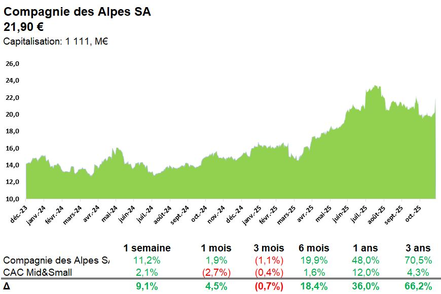 La finalisation effective du transfert — et un éventuel recours de DTG — constituera le prochain jalon clé. Une gouvernance clarifiée pourrait ouvrir la voie à des discussions stratégiques (partenariat industriel, cession de bloc) et soutenir le plan d’expansion internationale présenté par la direction. Cette clarification a fait bondir le titre de +19,4 % sur la semaine, portant sa performance à +43,6 % depuis le début de l’année. Un rebond qui montre qu’en Bourse, la mode ne se démode pas quand elle s’accompagne de stabilité