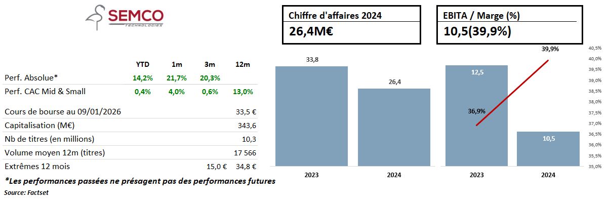 SEMCO Technologies s’est imposée comme l’un des rares spécialistes mondiaux d’eChucks, ces dispositifs essentiels qui assurent le maintien, la stabilité thermique et la planéité des wafers, fines tranches de silicium servant de base à la fabrication des puces. Introduite en bourse à l’été 2025, la société a rapidement retenu l’attention des investisseurs. Le titre progresse de + 125% depuis l’IPO et de près de +20 % depuis le début de l’année 2026, porté par l’intérêt croissant pour les acteurs exposés à la chaine de production des semi-conducteurs.