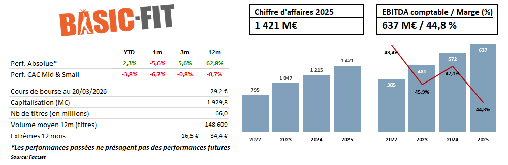 Chez Erasmus AM, nous sommes actionnaires de Basic-Fit et nous suivons l'évolution de la thèse avec conviction.