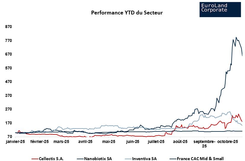 Inventiva –15 %, Cellectis –27 %, Nanobiotix –25 % : la volatilité reprend ses droits. Derrière les chutes, des parcours toujours spectaculaires depuis janvier, preuve que la science attire encore… les téméraires.