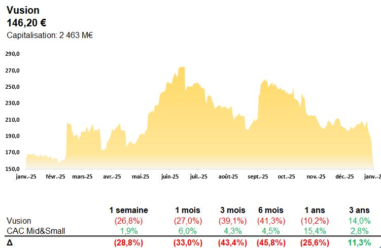 Le management du groupe, de son côté, a confirmé avec confiance sa guidance 2027 lors des résultats du T3 fin octobre, à savoir l’atteinte d’un chiffre d’affaires de 2,2 Md€ et d’une marge d’EBITDA de 22%. Et il continue d’afficher un discours très positif sur les perspectives à long terme de la société.