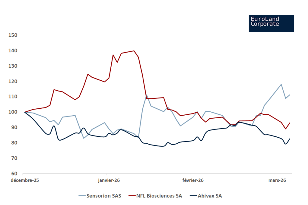 Sensorion s’envole après l’entrée de Sanofi au capital, NFL Biosciences rebondit grâce à ses avancées cliniques, et Abivax reste au cœur des spéculations de rachat autour de son traitement des maladies inflammatoires.
