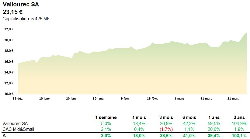 Le titre Vallourec enchaîne les bonnes nouvelles. Coté sur Euronext Paris, son cours a progressé de plus de 60% sur un an et déjà près de 50% depuis le début d’année, porté par un carnet de commandes bien rempli et une stratégie de diversification qui commence à payer.