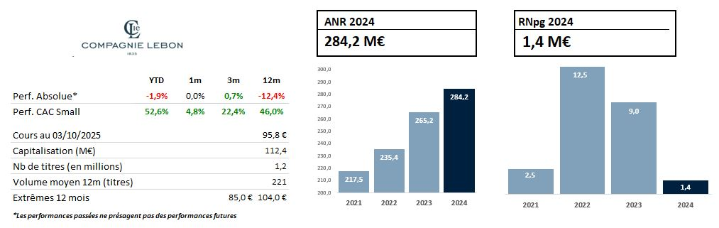 Malgré ces performances solides, le cours de bourse de Lebon reste fortement décoté par rapport à son ANR :