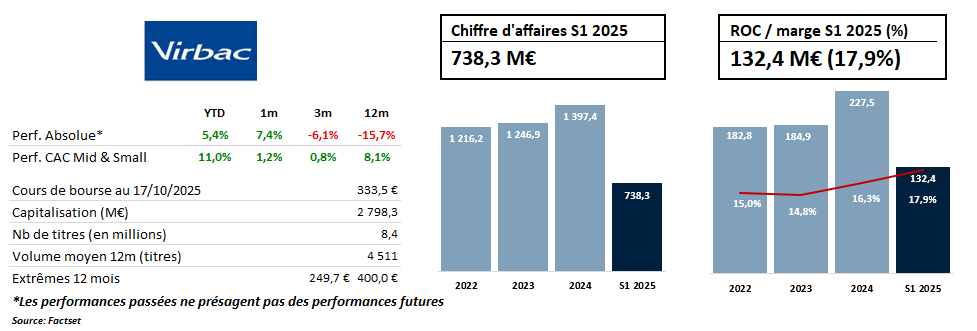 Grâce à un pipeline extrêmement prometteur pour les 5 années à venir et à un endettement maitrisé permettant de financer non seulement des opérations de croissance externe mais aussi des développements volontaristes en pet food, sur la Chine, ou encore dans les vaccins (un segment mieux margé et sur lequel le groupe s'est notamment renforcé avec les acquisitions de Sasaeah et Globion), Virbac est en bonne position pour poursuivre une croissance profitable qui devrait permettre au groupe d'atteindre d'ici 2030 l'objectif de 20% de marge Ebita.